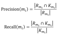 其中Rmi和Kmi分别表示R和K中与mi有连接的所有实体,所有实体的对应指标平均值则为最终的B-cubed指标值。