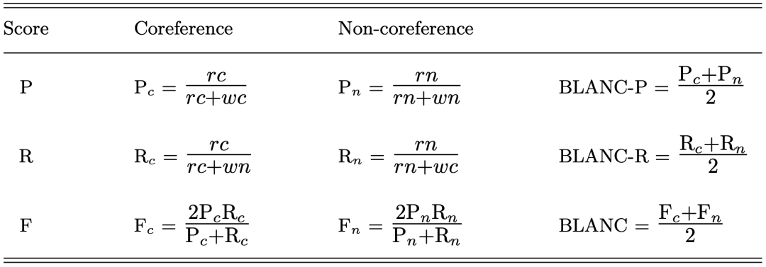 4.Recasens, M. & Hovy, E. H. (2011), 'BLANC: Implementing the Rand index for coreference evaluation.', Nat. Lang. Eng. 17 (4), 485-510.