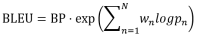 有了以上定义后,我们可以定义BLEU score,通常N取4,Wn取1/N。