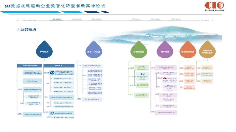 本文由CIO发展中心根据中国长江三峡集团有限公司总信息师金和平博士在《数据战略驱动数智化创新暨华北大企业数字化峰会》上的演讲整理在《数据战略驱动数智化创新暨华北大企业数字化峰会》上,中国长江三峡集团有限公司总信息师金和平博士分享了三峡集团在数字化转型领域的实战经验。他指出,企业的数字化转型应当从企业的实际情况出发,抓住业务的核心才能有效促进效率的提升。未来三峡集团在推进清洁能源开发和长江生态保护的同时,将进一步突破技术壁垒,整合数据资源,同时加强国产化技术工艺的升级改造,通过数字化转型,将大型水电工程建设与运行管理“大国重器”打造成一张带有中国特色的国家名片。大家好,很高兴能够在这里向大家分享中国长江三峡集团有限公司(以下简称三峡集团)在数字化转型方面的一些实践以及对未来的规划。首先我要为大家介绍一下三峡集团。三峡集团是一个典型的清洁能源开发集团,最著名的项目是三峡工程。目前三峡集团已经成为中国最大的清洁能源集团,不论从清洁能源的装机容量,还是生产的电能产量上来看,三峡集团都位列中国首位。在水电开发领域,三峡集团更是以全世界水力发电容量的5%,雄踞世界第一位。在清洁能源领域,目前位列世界第二,到2021年,乌东德、白鹤滩大坝工程投产后,也有望成为世界第一。三峡集团主要以水电项目为主,兼有风能、光能和其他的一些清洁能源的开发,是典型的传统型、重资产企业。三峡集团的定位除了大型水电的开发以外,还新增了一翼业务,即长江大保护,并且是发挥核心骨干作用。在金融业务上,三峡集团设立了长江大保护基金、青年开发基金等。在投资、开发、建设、运营的过程中,三峡集团还成立了设计院、工程建设管理等专业服务的子公司。根据国家的要求,三峡集团的战略定位主要有三个方面:从核心能力来说,要打造全球水电行业可持续发展能力;在国际业务层面,中国水电要走出国门,更多盈利;在海上风电领域,要做创新发展的引领者。目前来看,我们的IT基础设施,特别是技术方面,还差强人意。三峡集团的数字化转型在战略层面有强烈的需求,IT系统(包括技术层面)需要我们共同努力,向自主可控和本土化转型。三峡集团的数字化转型项目启动的非常早,从项目成立之初就秉承“业务发展到哪,IT服务到哪儿”的理念,以“持续创新,价值创造”作为信息化、数字化的文化内涵。目前三峡集团的信息系统已经覆盖了从设计、建设、生产、运营、管理、决策等多个领域。从三峡集团主营业务来看,我们十分重视建设管理的数字化,这是由三峡集团属性决定的,重资产企业的主要竞争力就在于通过精细化施工从而形成具有竞争力的资产。今年的疫情给很多企业都带来了或多或少的影响,而我们并没有受到疫情的影响,这是因为我们的生产原料是水,主要的利润来源于大坝,而且能源作为基本的需求,受市场环境影响较小,因此我们在疫情期间依然保持着稳步发展。我认为数字化一定要抓住核心,对于三峡集团来说,最重要的是工程建设的数字化,从电能、清洁能源的角度来讲,主要的成本来源于建设时期,大概可以占到总成本的80%。目前三峡集团的建设管理数字化已经从传统的ERP管理系统,延伸至全面的现场感知,涵盖了大坝建设的原材料、温度控制、运营过程等多个方面,进行了相关的分析后,可以实施有效的控制和干预。大坝建成后最重要的环节是运营,智慧水电站运营的主要工作就是检修,通过对感知的互联网数据进行分析,我们能够明确大坝和机组的健康状况,能够为检修周期、检测次数的方案制定提供数据参考。水资源的调度利用也是水电领域非常重要的环节,通过合理的调度实现0.1个百分点的效率提升就不得了。三峡集团的人均劳动生产率,人均创造利润,单位劳动成本创造利税都是央企的第一名,同时三峡集团的资产负债率是最低的,取得这些成果很大程度上是因为效率的提升,大量工作已经由机器替代人来完成。过去葛洲坝电厂,一个两百多万装机的电厂需要3000多人的运营队伍。现在三峡电站,两千两百五十万装机的容量只需要300多人进行运营管理,劳动生产率获得了大幅的提高。三峡集团大水电机组每台大概有将近两万个测点,所有测点的指标参数都传送到集中诊断和检修系统,该系统已经在长江电力运行了很多年,现在所谓的IOT概念,实际上我们在很多年之前就已经在做这样的工作了。客观来讲,数据的积累对我们不断优化策略,包括整个流域内所有设备的横向参考提供了有效的支撑。梯级调度是三峡集团最核心的能力,大坝具有防洪、航运、发电、补水等功能,水位的波动对于航运和沿岸生态环境具有很大影响,河道泥沙淤积的控制也很重要。作为流域中的大型水电站,上下游的利益相关者非常广泛,所以数字化对于三峡来说,意义重大,整个流域的调度工作,对于数据的依赖程度很高。举例来说,冬季上海的咸潮现象比较严重,所以在上游加大放水量,江水对海水形成冲击,能有效抵制咸潮现象。海上风电的复杂程度更高,无论是勘测、设计、施工还是运营,比陆上风电的难度系数要高出不止一个等级。目前来看,海上风电在全世界范围内都属于起步阶段,所以三峡集团的海上风电全产业链和整个平台产品,包括风电数据化资产管理的解决方