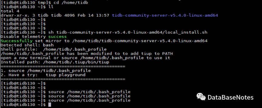 sh tidb-community-server-v5.4.0-linux-amd64/local_install.sh
