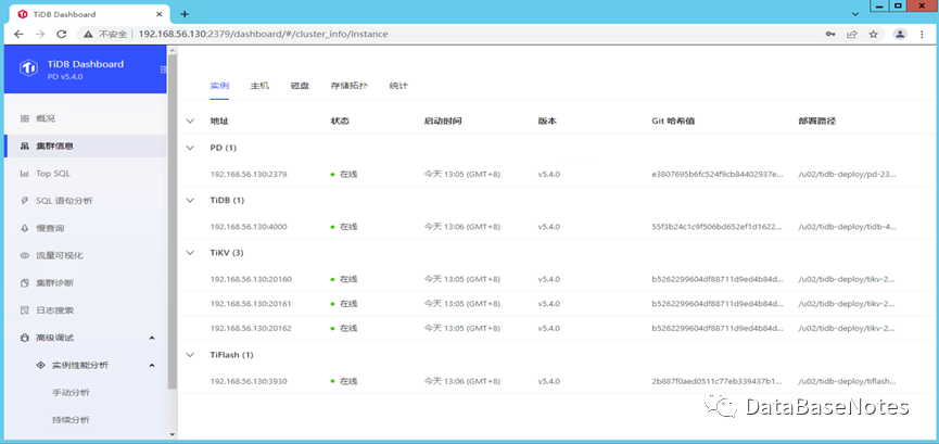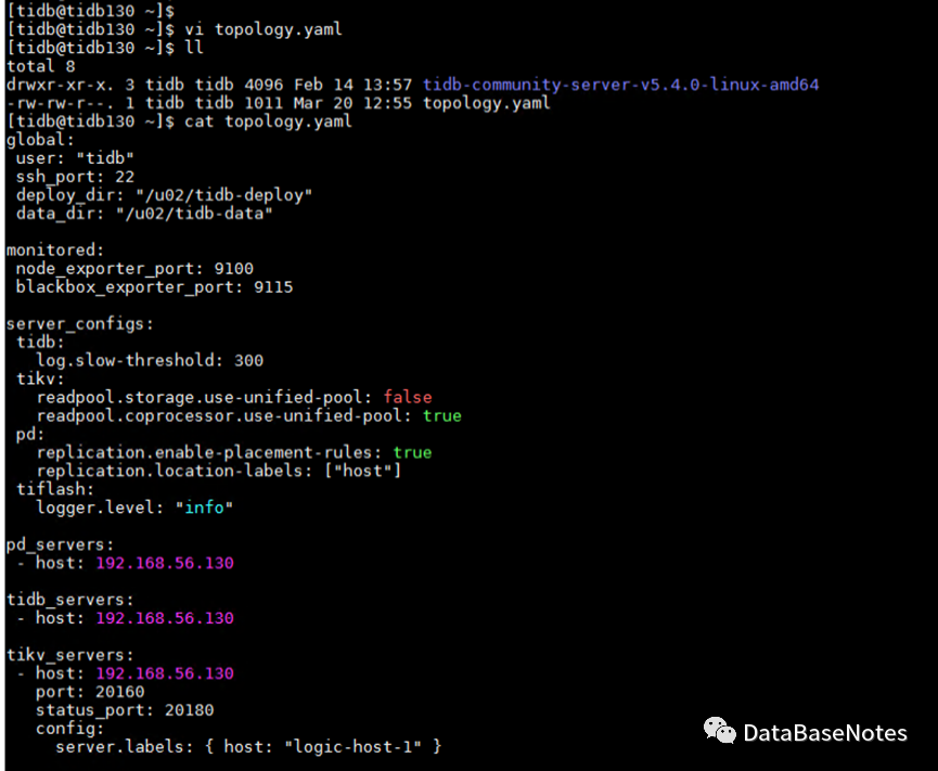 Tidb130 | 192.168.56.130 | Centos7.8 | 8core | 20G | 200GB |