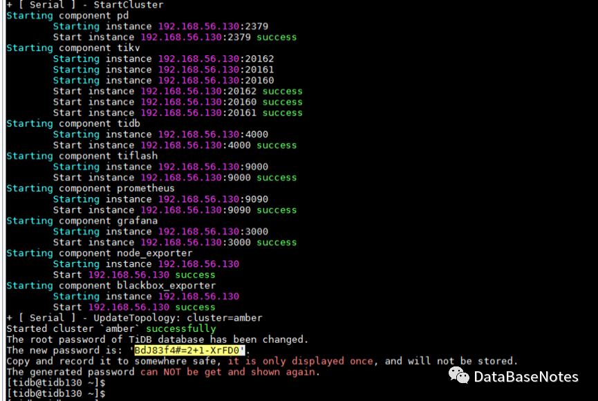 备注,注意这个地方的密码,后面登录tidb 建议修改之。