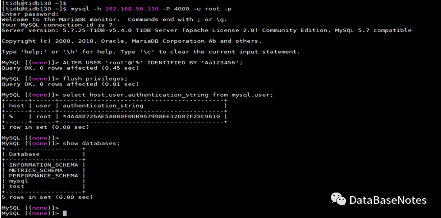 mysql -h 192.168.56.130 -P 4000 -u root -p