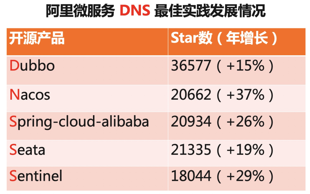 阿里微服务领域开源产品的关注度提升 20%左右,Star 数在过去一年陆续突破 2 万,关注度持续提升。