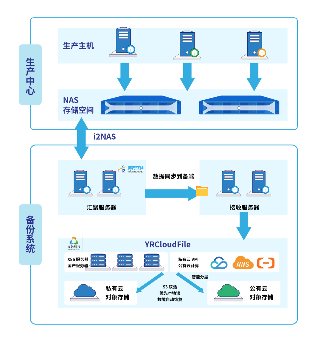云计算和大数据产业的持续普及应用,极大地推动了存储和数据灾备行业的发展。英方软件对于各种云平台及存储平台具备高兼容性和优异的网络传输性能,可实现数据在本地存储、NAS存储及对象存储间的安全复制和交换共享。通过与焱融科技自主研发的分布式存储产品的合作,双方可以为用户提供领先的跨NAS存储平台的数据复制和备份方案,解决传统NAS备份无法解决的难点,降低备份成本,确保重要数据的安全和互联互通。