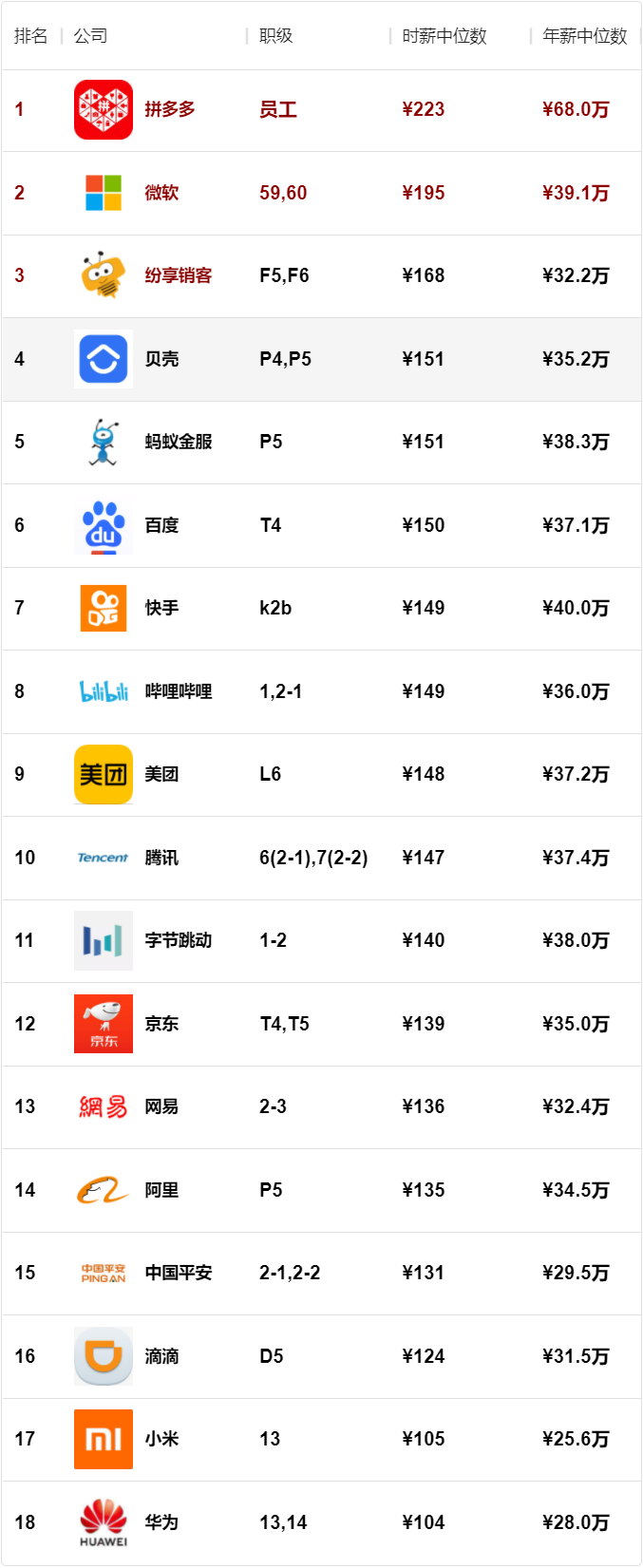 为了保证一定的准确性,一些公司的职级因为提交的薪酬过少,因此不被计入排行中。
