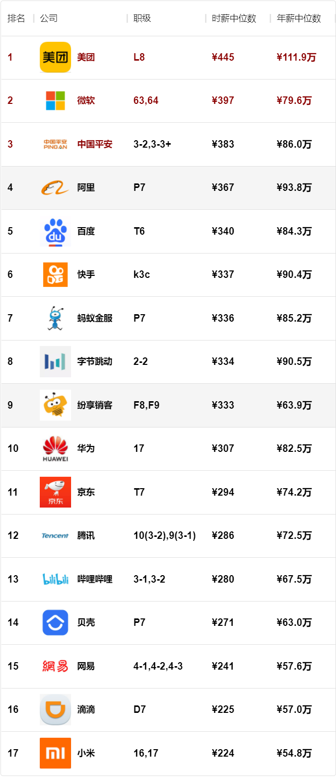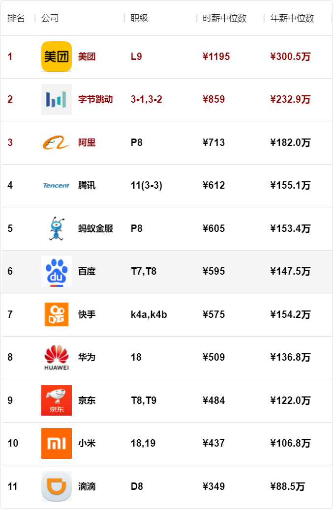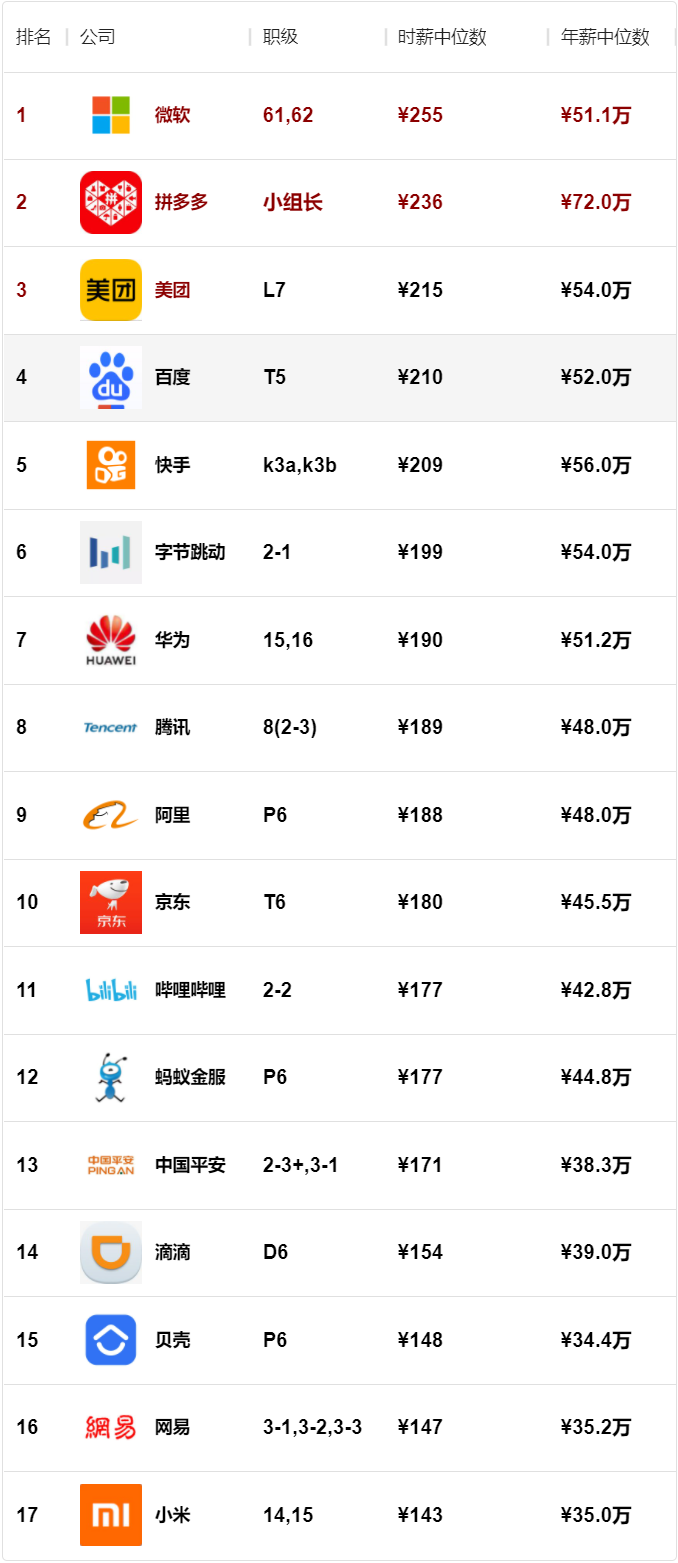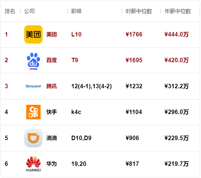 榜单的数据来源为职级对标网站(duibiao.info)用户提交的薪酬,网站每周会进行一次数据处理,然后生成此榜单。