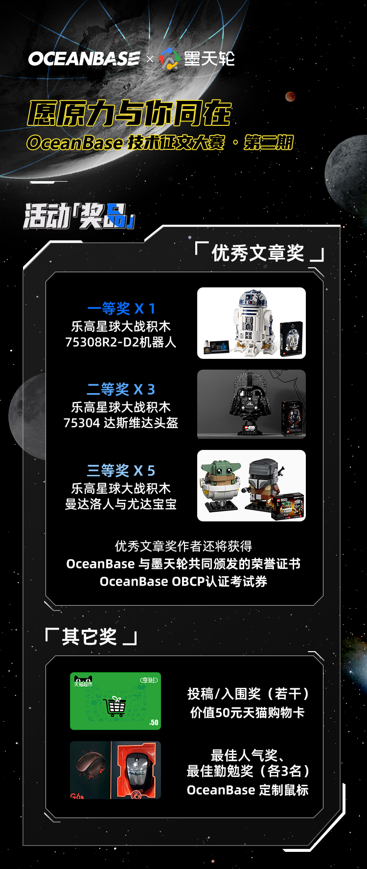 为帮助广大技术爱好者学习原生分布式数据库相关知识,快速掌握 OceanBase 的操作技能,今年2月,OceanBase 联合墨天轮技术社区举办了第二届技术征文大赛,鼓励大家将学习体会、使用心得和实践总结分享给更多技术爱好者。