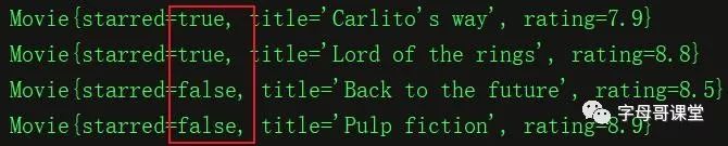 这个功能就比较有意思了,举个例子大家理解一下。假设我们有一个类Movie,有三个成员变量分别是starred(是否收藏), title(电影名称), rating(评分)。