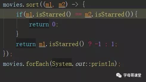 这段代码如果以lambda表达式简写。箭头左侧是参数,右侧是函数体,参数类型和返回值根据上下文自动判断。如下: