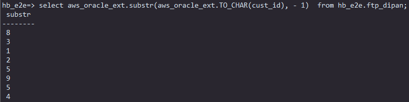 CREATE OR REPLACE FUNCTION immutable_to_char(numeric) RETURNS character varying AS 'select aws_oracle_ext.to_char($1)' LANGUAGE SQL IMMUTABLE; CREATE INDEX idx_cust_id_i ON hb_e2e.ftp_dipan USING BTREE (aws_oracle_ext.substr(immutable_to_char(cust_id::numeric),lengthb(immutable_to_char(cust_id::numeric)) ) ASC); |