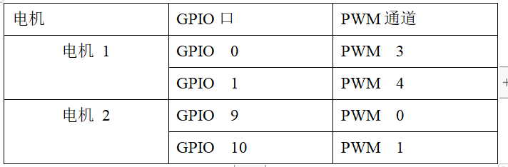 void pwm_init(void){ GpioInit(); //引脚复用 IoSetFunc(WIFI_IOT_IO_NAME_GPIO_0, WIFI_IOT_IO_FUNC_GPIO_0_PWM3_OUT); IoSetFunc(WIFI_IOT_IO_NAME_GPIO_1, WIFI_IOT_IO_FUNC_GPIO_1_PWM4_OUT); IoSetFunc(WIFI_IOT_IO_NAME_GPIO_9, WIFI_IOT_IO_FUNC_GPIO_9_PWM0_OUT); IoSetFunc(WIFI_IOT_IO_NAME_GPIO_10, WIFI_IOT_IO_FUNC_GPIO_10_PWM1_OUT); //初始化pwm PwmInit(WIFI_IOT_PWM_PORT_PWM3); PwmInit(WIFI_IOT_PWM_PORT_PWM4); PwmInit(WIFI_IOT_PWM_PORT_PWM0); PwmInit(WIFI_IOT_PWM_PORT_PWM1);}