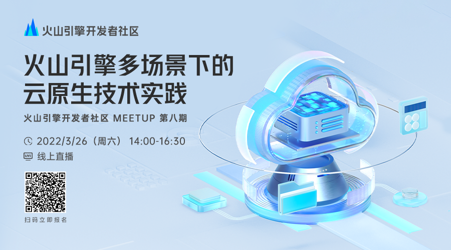 3 月 26 日,火山引擎开发者社区 2022 年首场 Meetup 来袭,火山引擎的 4 位资深工程师将为大家分享虚拟化存储、日志分析、应用观测、网关调度等多场景下的云原生技术,为大家解构火山引擎这朵“新云”。扫描下方二维码即可报名活动。