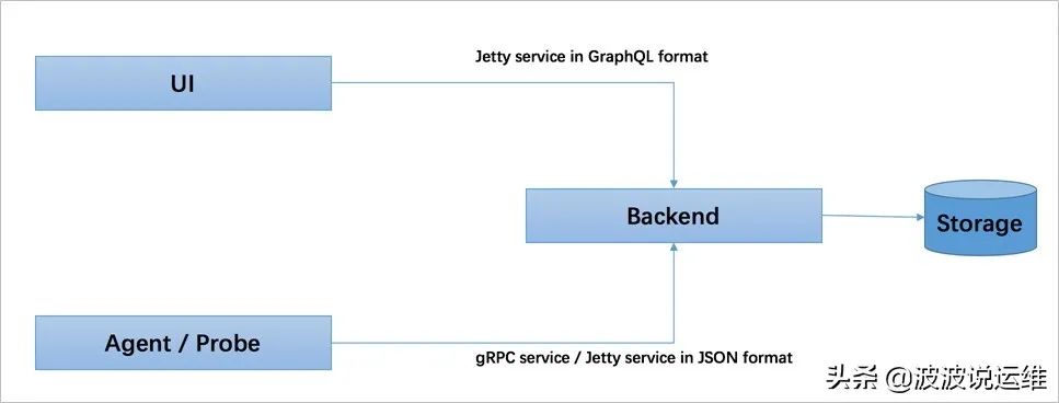 SkyWalking 逻辑上分为四部分: 探针, 平台后端, 存储和用户界面。