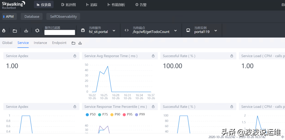 拓扑结构 性能指标和追踪一体化. 理解分布式系统的第一步是通过观察其拓扑结构图. 拓扑图可以将复杂的系统在一张简单的图里面进行可视化展现. 基于拓扑图,运维支撑系统相关人员需要更多关于服务/实例/端点/调用的性能指标. 链路追踪(trace)作为详细的日志, 对于此种性能指标来说很有意义, 如你想知道什么时候端点延时变得很长, 想了解最慢的链路并找出原因. 因此你可以看到, 这些需求都是从大局到细节的, 都缺一不可. SkyWalking 集成并提供了一系列特性来使得这些需求成为可能, 并且使之易于理解.
