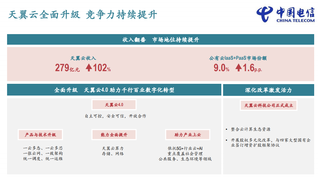 天翼云收入翻番
