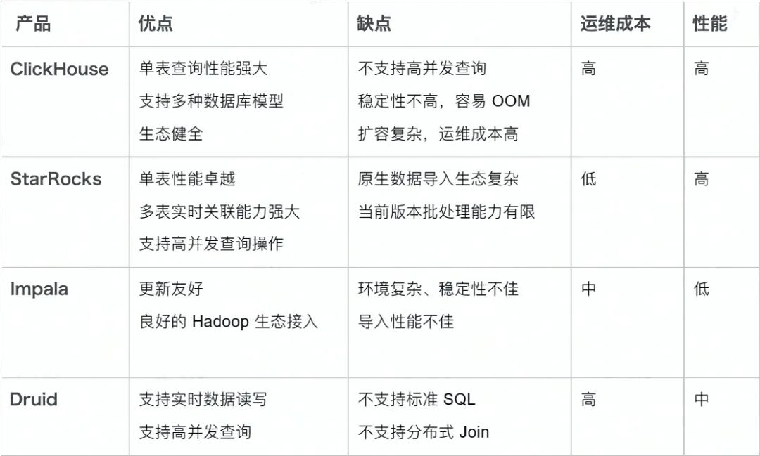 针对数据存储层的问题与挑战,我们着力于寻找一款高性能,简单易维护的数据库产品来替换已有的 Spark + HBase 架构,同时也希望在业务层上能突破 Hbase 点查的限制,通过实时多表关联的方式拓展业务层的需求。