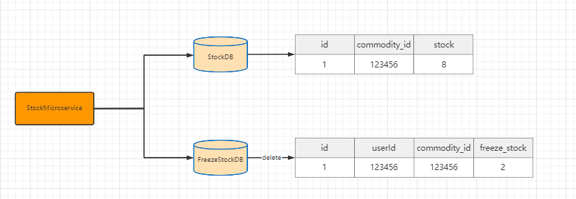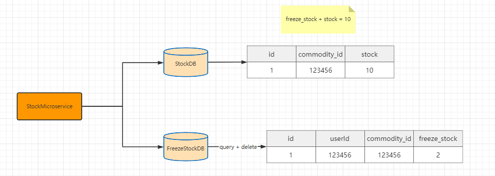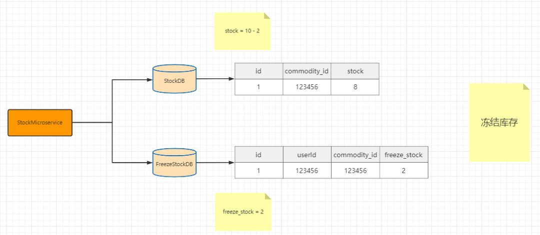 恢复库存就是查询库存冻结表中的冻结库存,然后加上库存表中库存(库存表库存 = 库存表库存 + 冻结库存), 8 + 2 = 10 , 然后删除冻结库存记录, 代表事务回滚成功。