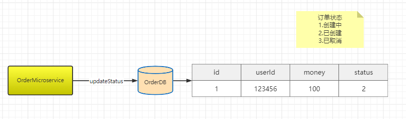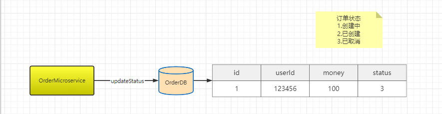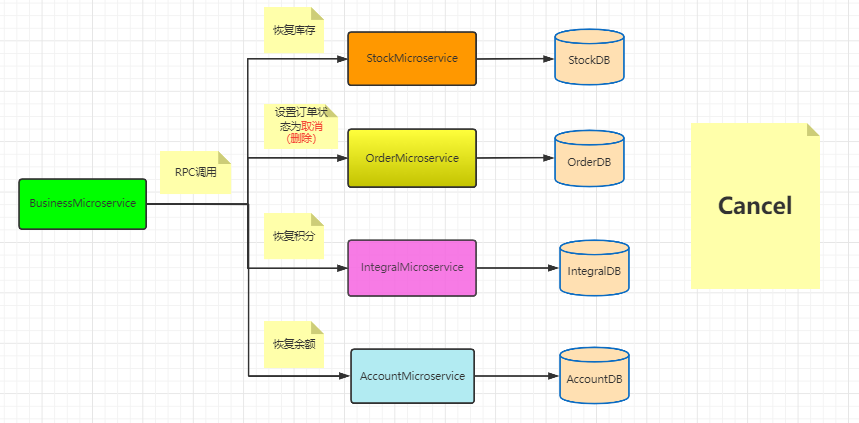 阶段某个分支事务出错,所以需要将订单状态置为已取消(这个状态并不是订单生命周期中的状态), 而是为事务设计的状态,代表事务回滚成功。