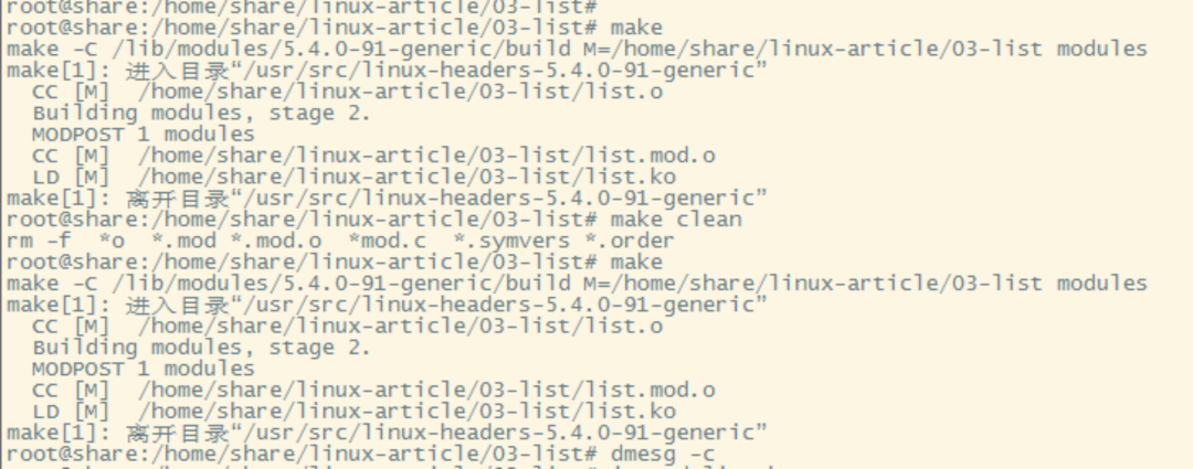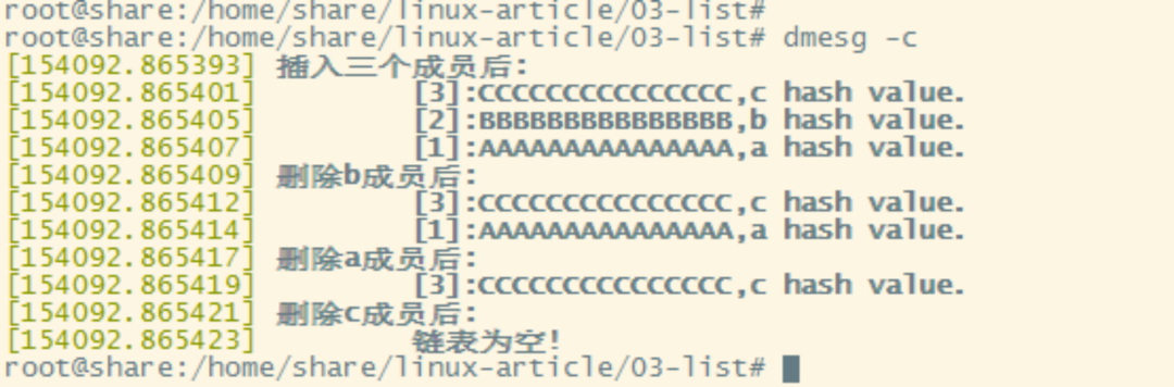 我们来通过dmesg来查看结果是否和我们程序设计的结果一样。