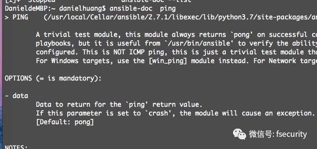 ansible 自带了许多模块,可在终端中输入ansible-doc 模块名,查看一个模块的使用办法