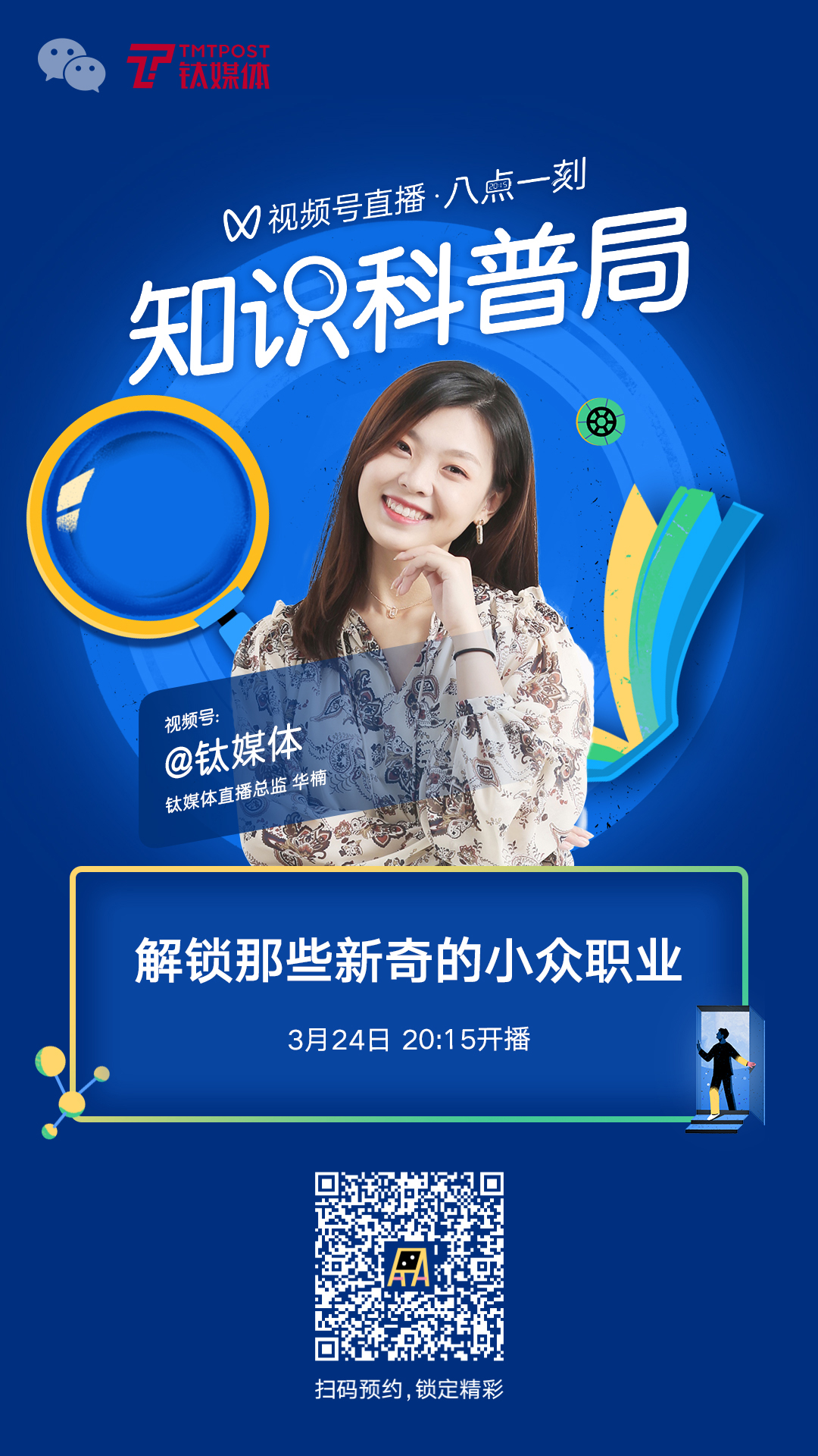 3月24日(周四)晚八点一刻,华楠直播间54期,我们将邀请五位小众职业从业者,现场跟我们聊聊这些新奇职业背后的故事。