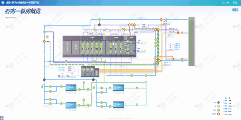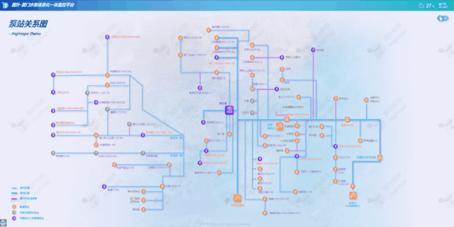 Hightopo 智慧水务可视化解决方案依托 GIS、BIM、大数据等融合技术,合力打通数据孤岛,实现全面感知排供管网运行状况,巩固对水务建设全生命周期管理。不仅满足了配水、净水、输水以及工艺、设施的数智化全过程,还有效规避城市供水出现二次污染问题,节能降耗,保障城市用水安全以及污水治理的精准化运作。