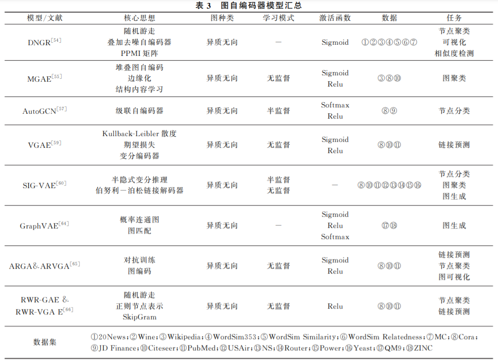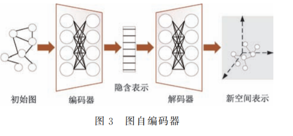 在 深 度 学 习 领 域,自 编 码 器 (Auto-encoder, AE)是一类将输入信息进行表征学习的人工神经网 络.自编码器一般包含编码器和解码器两个部分,基于自编码器的 GNN 被称为图自编码器(GraphAuto-encoder,GAE),可以半监督或者无监督地学习 图节点信息.如图3所示