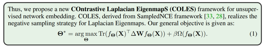 i. 基于 SampledNCE 框架 [33, 28] 推导出 COLES,将拉普拉斯特征图重新表述为对比设置。