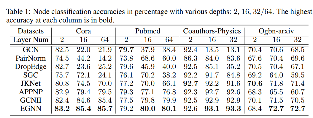 (3)所提出的原理和 EGNN 可以很好地解释大多数现有的深度 GNN 技术。实证结果表明,EGNN 可以轻松训练达到 64 层,并在基准测试中取得令人惊讶的竞争性能。