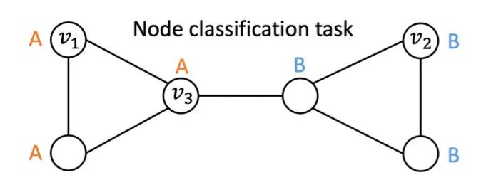 根据(Xu et al., 2019),基于图消息传递架构的GNN的表达能力上限是1-WL图同构测试(1-Weisfeiler-Lehman graph isomorphism test),也就是说,在只使用图结构信息的情况下,这些GNNs不能区分开处于同构位置的两个节点。举个例子,如下图中的节点和有相同的局部邻居结构,GNN会把它们映射到Embedding空间中相同的点上。