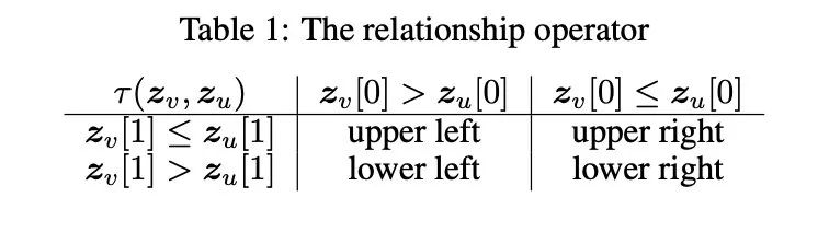 表示两个节点的相对位置关系,取值空间是{upper left, upper right, lower left, lower right}。