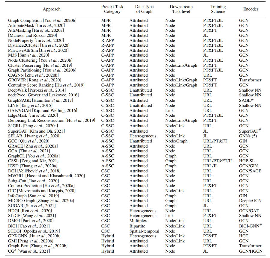 在本综述论文中,作者提供了使用SSL训练GNN的不同方法的统一回顾。具体来说,将SSL方法分为对比模型和预测模型。在这两类中,我们都为方法提供了一个统一的框架,以及这些方法在框架下的每个组件中的不同之处。我们对GNNs SSL方法的统一处理揭示了各种方法的异同,为开发新的方法和算法奠定了基础。我们还总结了不同的SSL设置和每个设置中使用的相应数据集。为了促进方法开发和实证比较,我们为GNNs中的SSL开发了一个标准化测试床,包括通用基线方法、数据集和评估指标的实现。