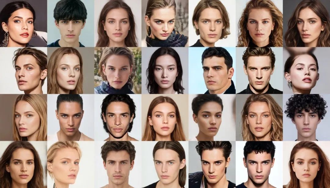 这种操作会产生一种有趣的现象--它能够以一种连贯的方式来组合多个图像。如图,该模型生成了两个图像 A 和B,然后通过从 A 中提取低级别的特征并从B 中提取其余特征再组合这两个图像,这样能生成出混合了 A 和B 的样式特征的新人脸。