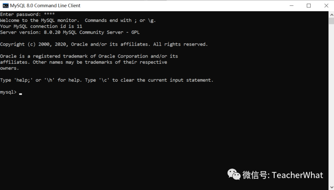 点击【MySQL 8.0 Command Line Client】,然后输入密码开始MySQL之旅。
