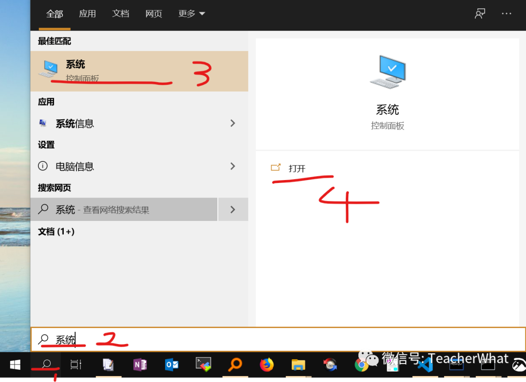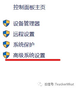 通过开始菜单(Win键),找到【系统】->【打开】->【高级系统设置】