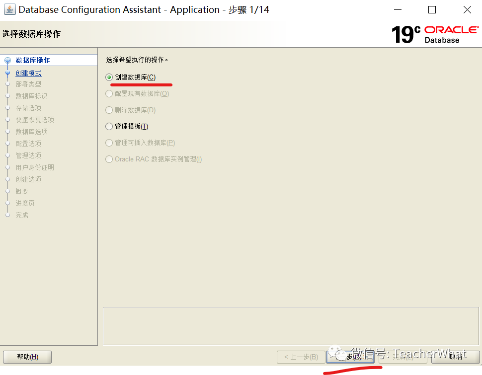 选择【创建数据库】,点击【下一步】。