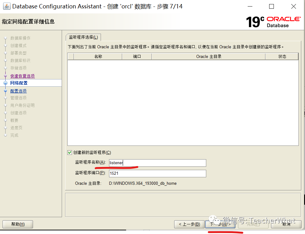 4.8 指定网络配置详细信息,创建监听程序