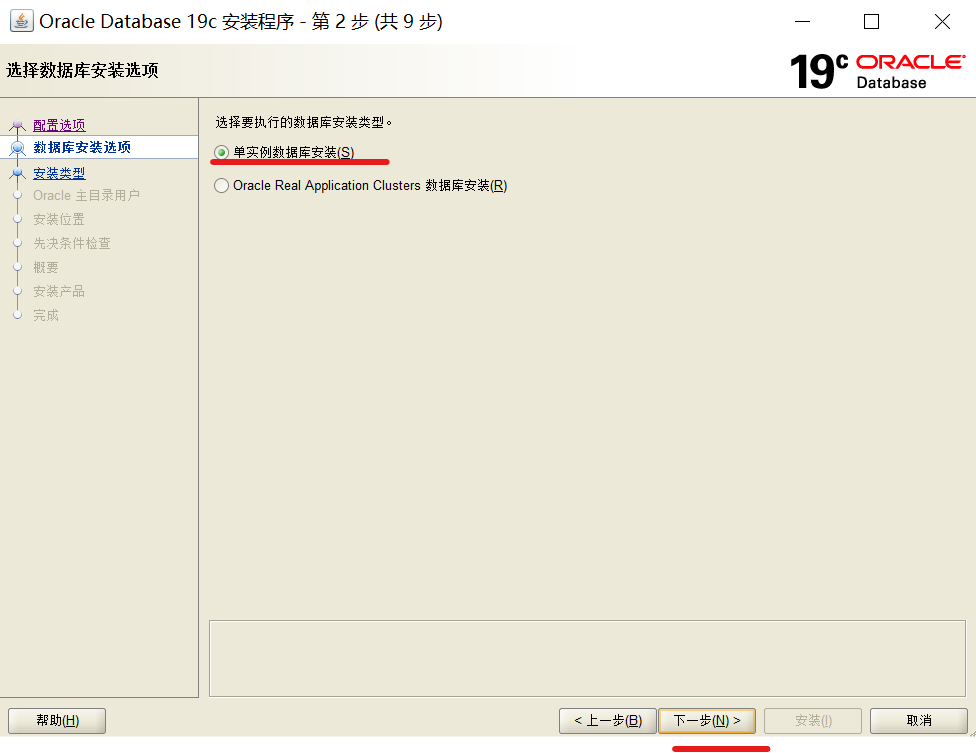 这里选择【单实例数据库安装】,点击【下一步】。