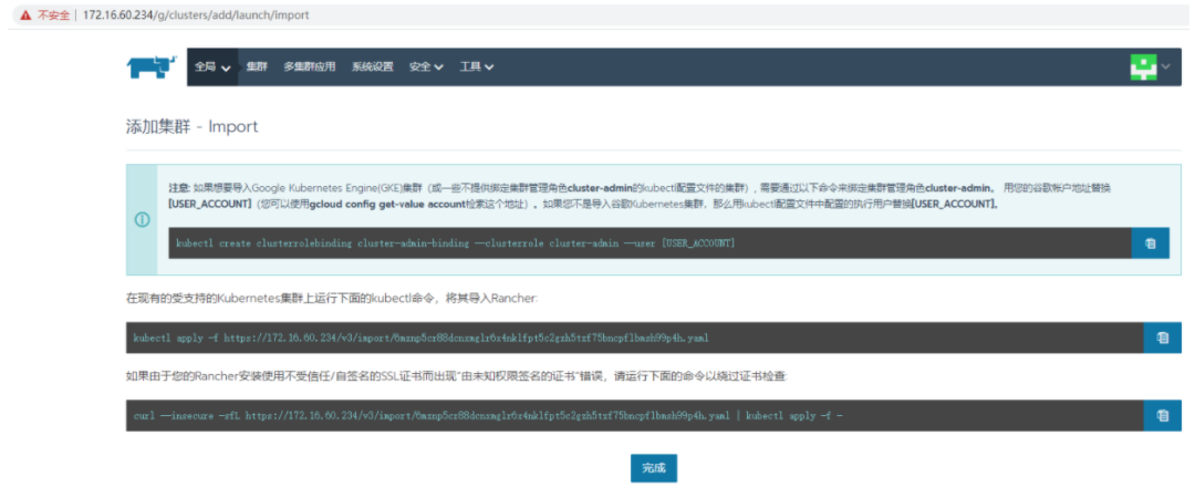 然后根据rancher的提示操作