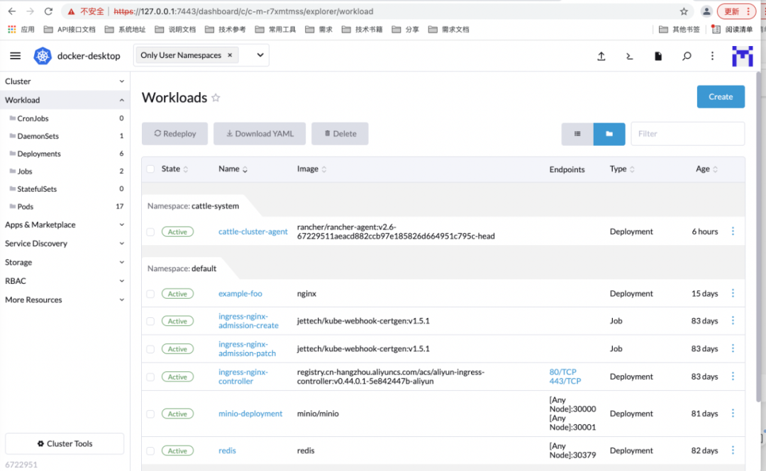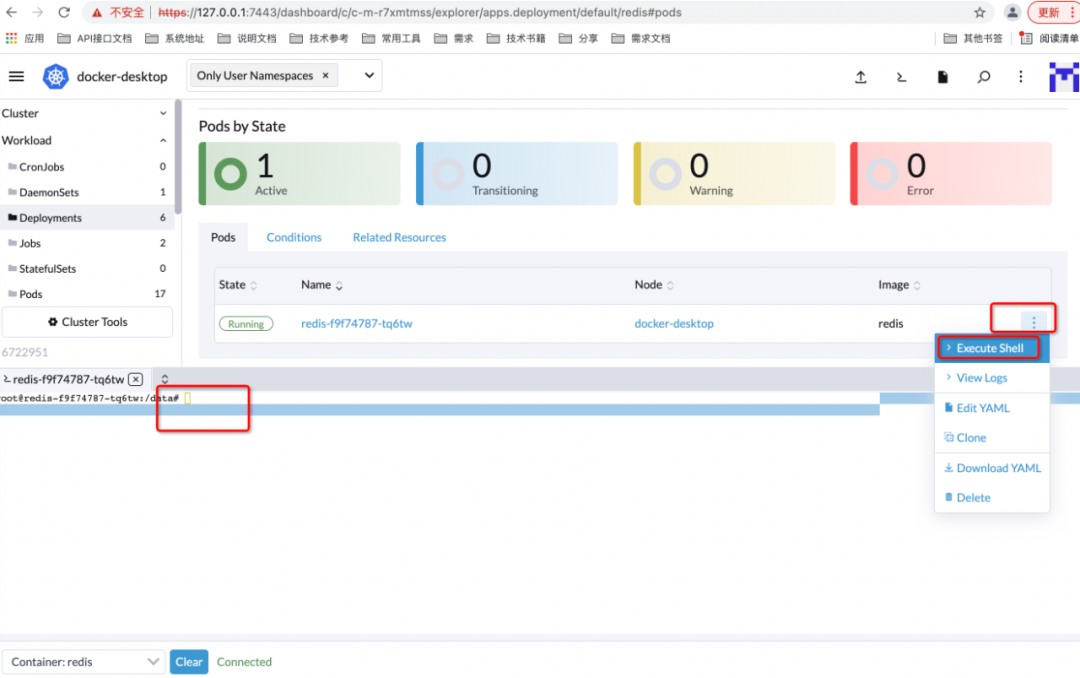 https://172.17.0.3:7443这个地址连不上,在另外一个docker上,ip是docker内部ip,端口是宿主机ip,当然连不上,我们该下deployment,改成127.0.0.1,总可以了吧,很遗憾,仍然不行。是时候回去学习一些基础知识了。
