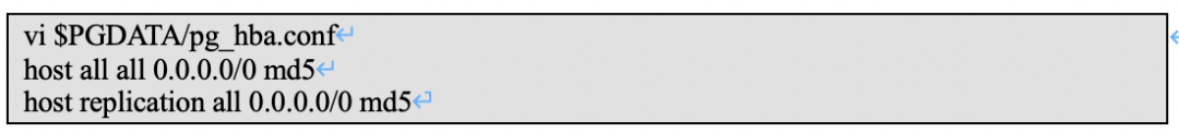 为了实现其他机器对PolarDB for O 数据库的访问,还需要修改访问控制文件,即pg_hba.conf,一般是放开所有的ipv4 的访问,尾部添加如下配置: