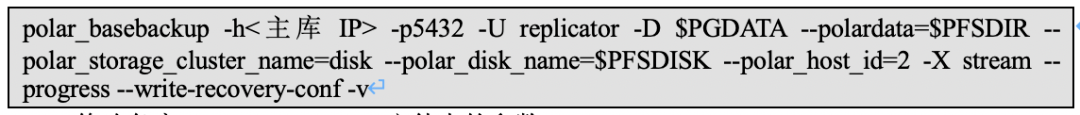 2) 在备份执行pg_basebackup命令,使用主库数据目录和PFS初始化备库数据目录。(注意$PGDATA目录不能提前创建,只创建前缀目录/app)