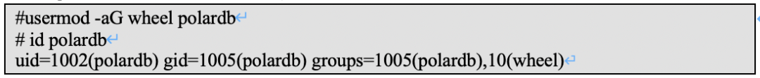 ②把polardb用户加入wheel组,加入此组才有sudo权限