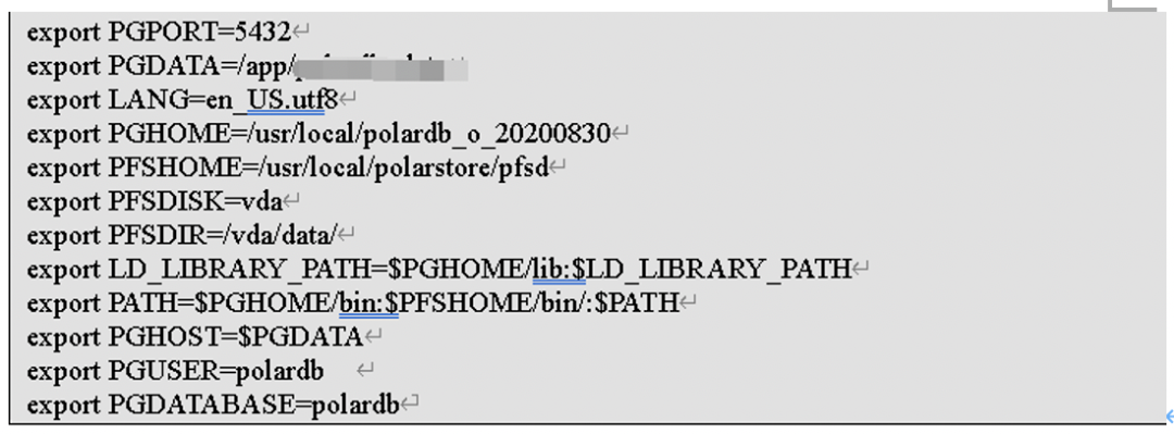 为polardb用户配置环境变量,切换polardb用户,在.bash_profile文件中添加如下内容,最后使用命令source .bash_profile生效环境变量。