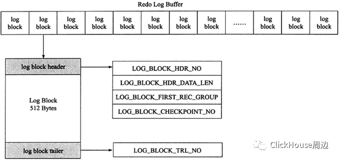 日志尾只有一个部分:log_block_trl_no ,该值和块头的 log_block_hdr_no 相等。