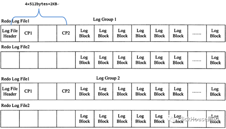 在每个组的第一个redo log file中,前2KB记录4个特定的部分,从2KB之后才开始记录log block。除了第一个redo log file中会记录,log group中的其他log file不会记录这2KB,但是却会腾出这2KB的空间。如下:
