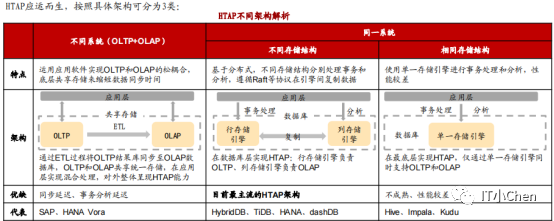 关系型数据库分为:OLAP、OLTP、HATP(混合事务/分析处理,Hybrid Transactional/Analytical Processing),目前 HTAP 大致有两种实现方式: