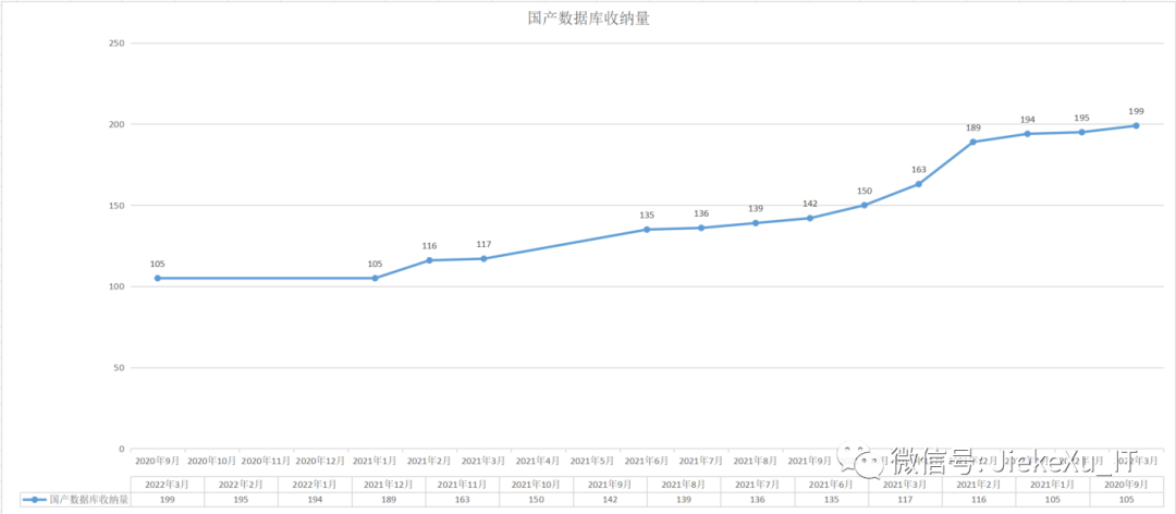 根据墨天轮收录的国产数据库数量来看,数据库产品数量发展特别迅速,最近1年多时间,新增了近 100 种数据库产品。